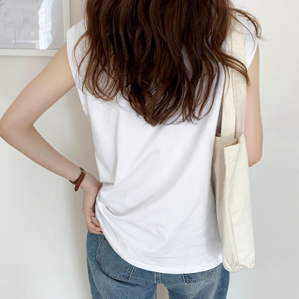 おしゃれ ノースリーブカットソー 無地 クルーネックプルオーバー 韓国ファッショ夏トップス シンプル カジュアルtシャツ
