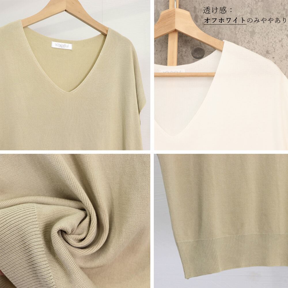 フレンチスリーブ ニットソー 体型カバー vネック 冷感タッチ 半袖 サマーニット きれいめ オフィスカジュアル 着やせ