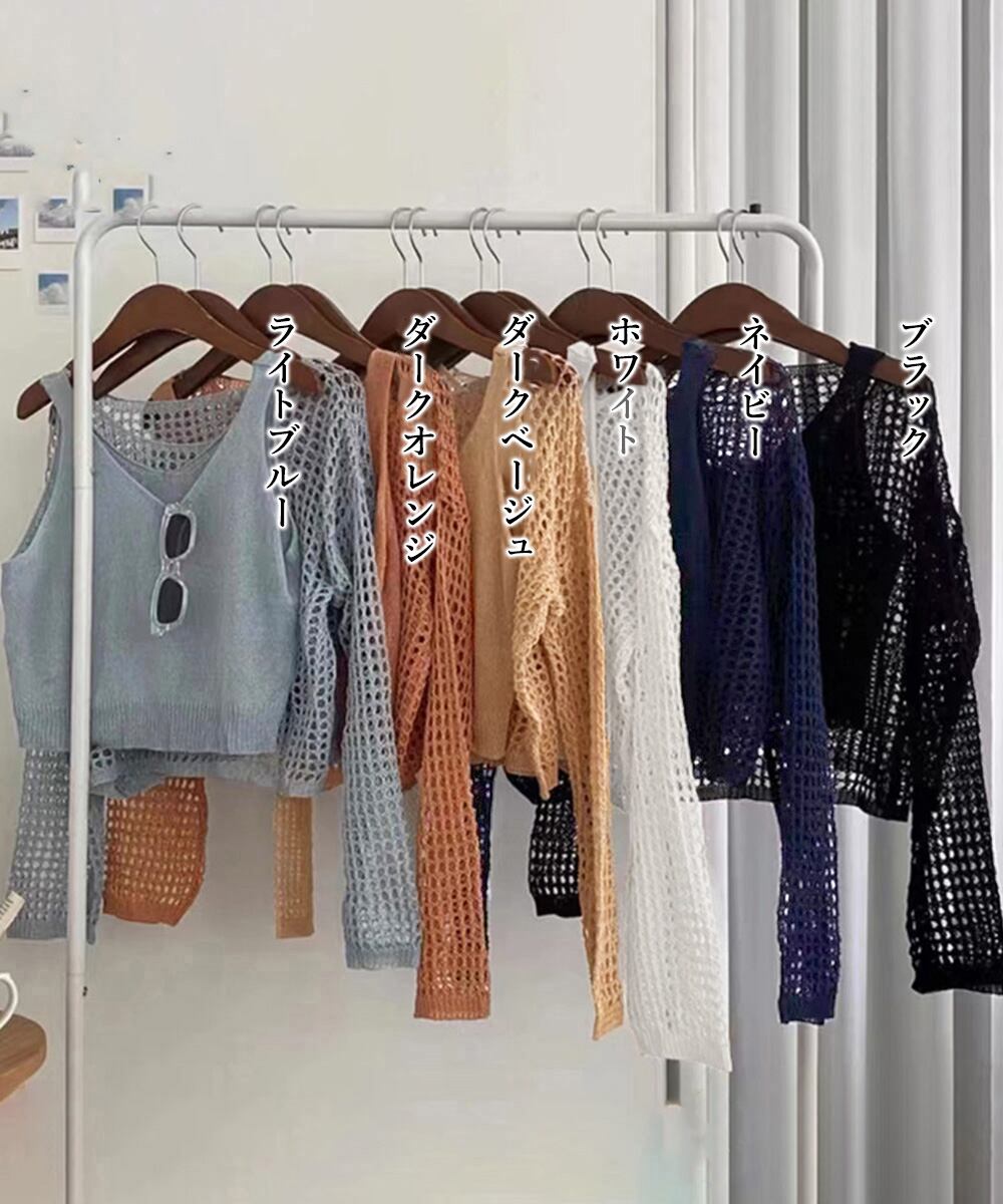 ざっくりと編まれたクロシェ編みで透け感が楽しめるアイテム