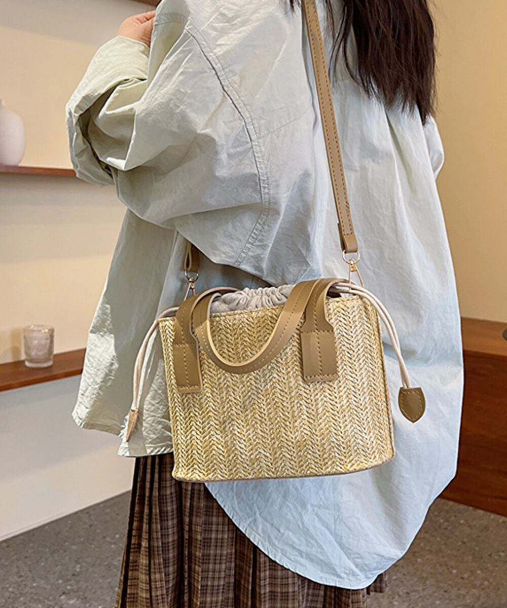 ミニスクエアバッグ 2WAY 草編み巾着袋バッグ トートバッグ 斜めがけ 浴衣小物 麦わらかばん 花火大会 手提げバッグ