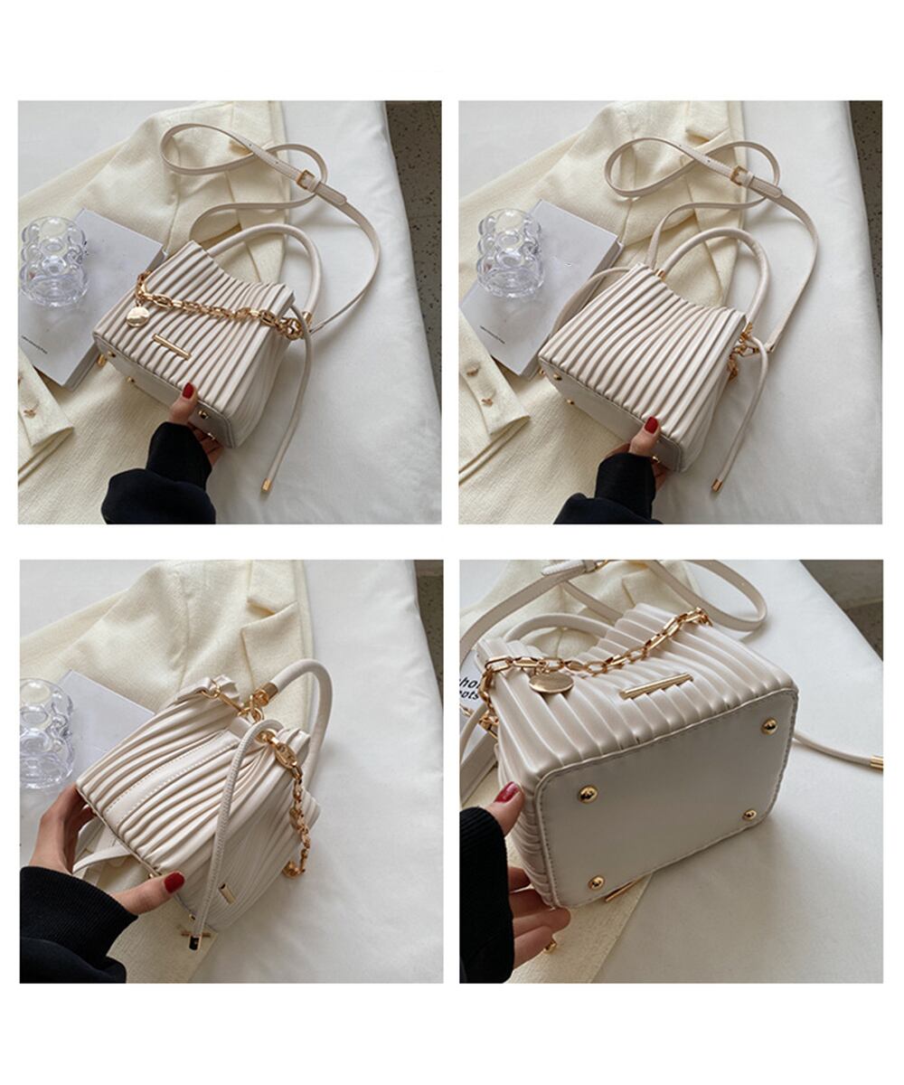 上品なプリーツデザインが目を惹く綺麗めルックスの2WAY巾着バッグ