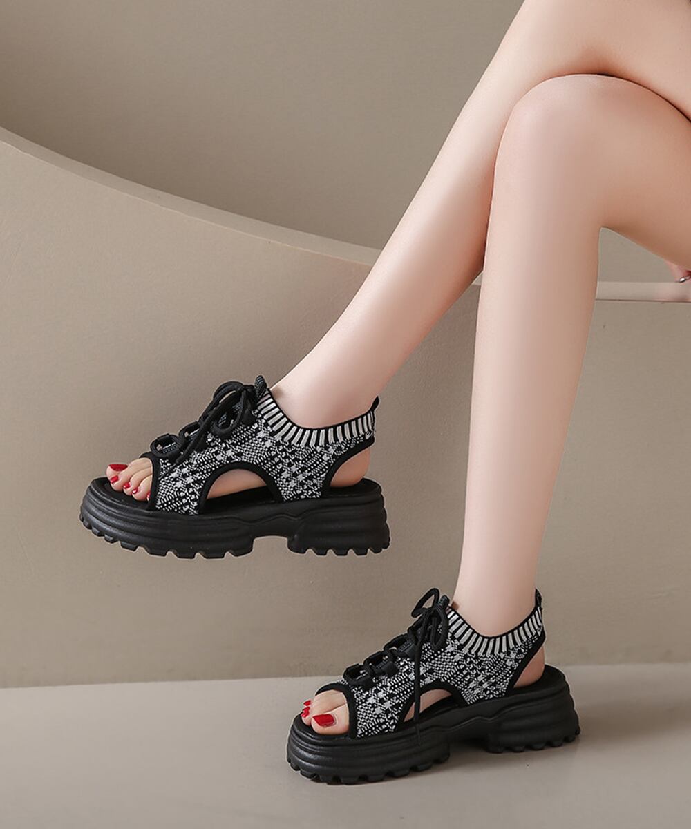 ボリュームソールコンフォートサンダル美脚脚長 歩きやすい カジュアル ニットサンダル 履きやすい靴春夏 軽量くつ 通気性