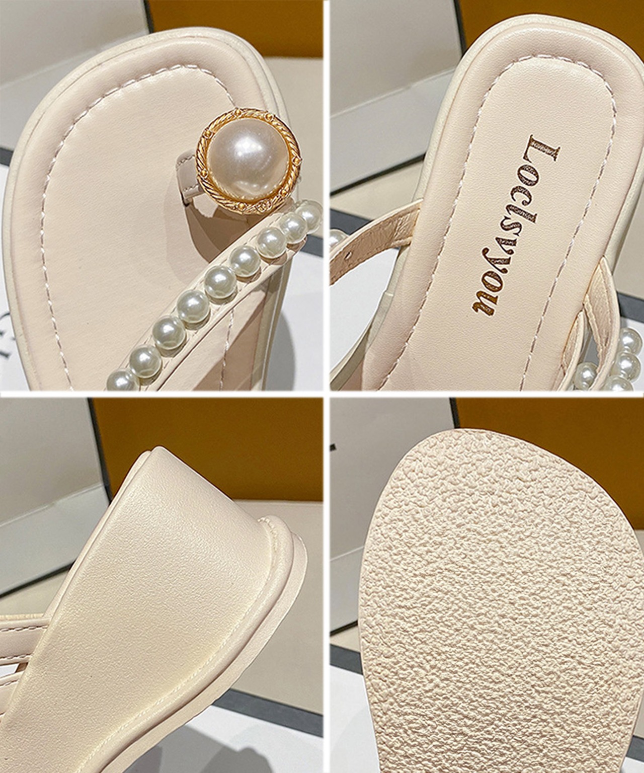 レディース 大人可愛いミュールサンダル 履きやすい パール飾り 軽量夏靴 リゾートサンダル きれいめコンフォートサンダル