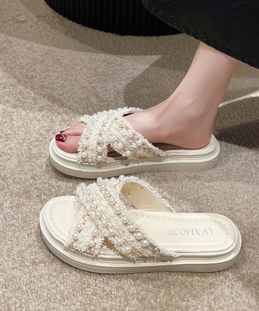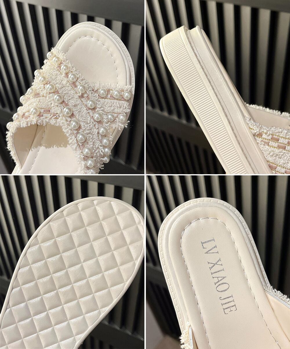 レディース 韓国 真珠付きサンダル お洒落 大人可愛いシューズ 歩きやすいフラットサンダル 軽量スリッパ ビーチサンダル