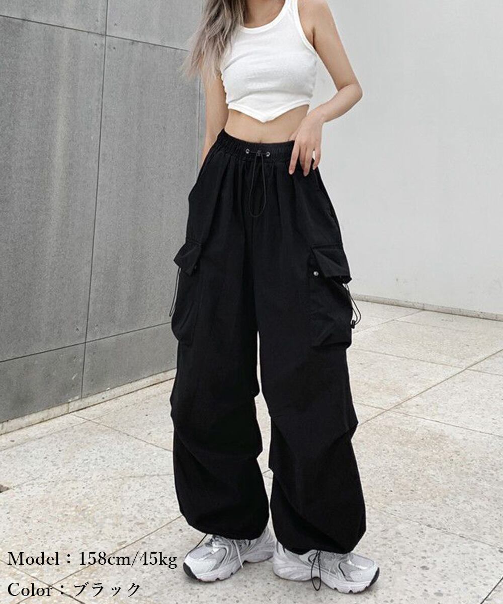 ミリタリーパンツ 薄手パラシュートパンツ 春夏スポーツパンツ ダンス衣装 韓国風 ウエストゴム ストリート ワイドパンツ