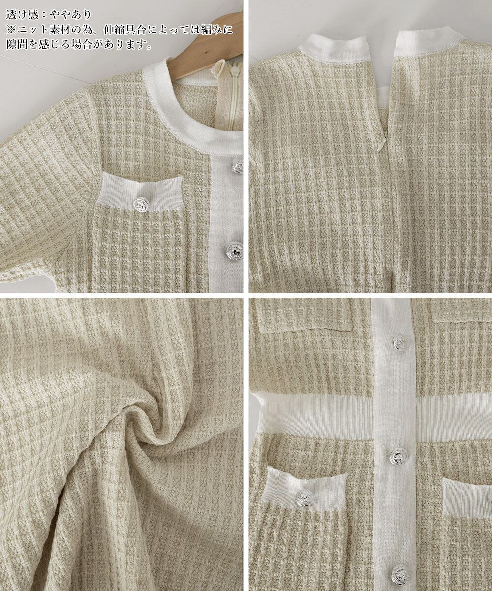 飾りシルバーボタンのデザインが華やかな半袖ニットワンピース