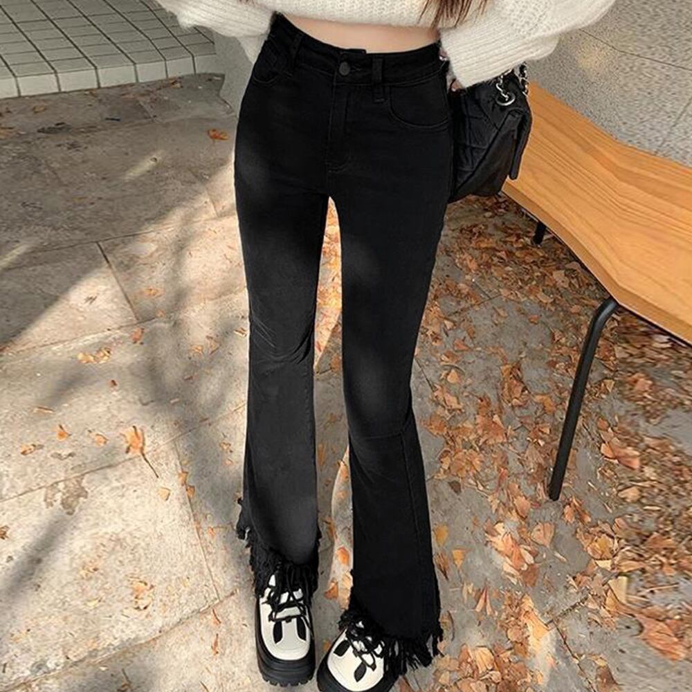 ボトムスストレート ジーンズ春秋低身長 デニムフレアパンツ