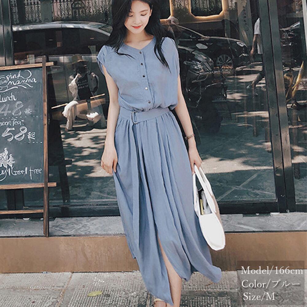 シャツワンピース レディース ベルト付き ロングワンピース ノースリーブ 着やせ シフォン ワンピース 体型カバー
