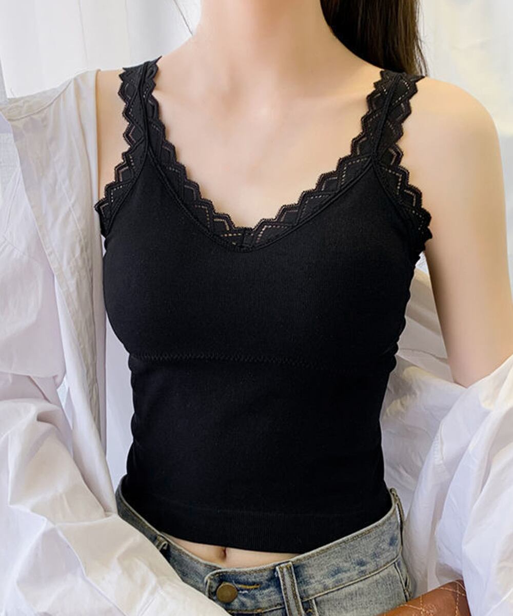 重ね着 レースキャミソール レディース Vネックセクシー下着 ノースリーブ 肌着 韓国風 アンダーウェア シンプル