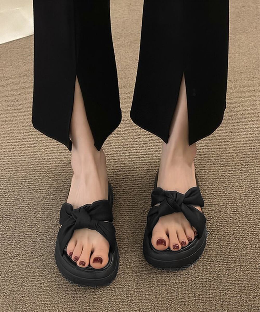 サンダルカジュアル スリッパ サンダル 結びリボンミュール