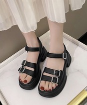 太いベルトデザインがインパクト抜群のバックルサンダル