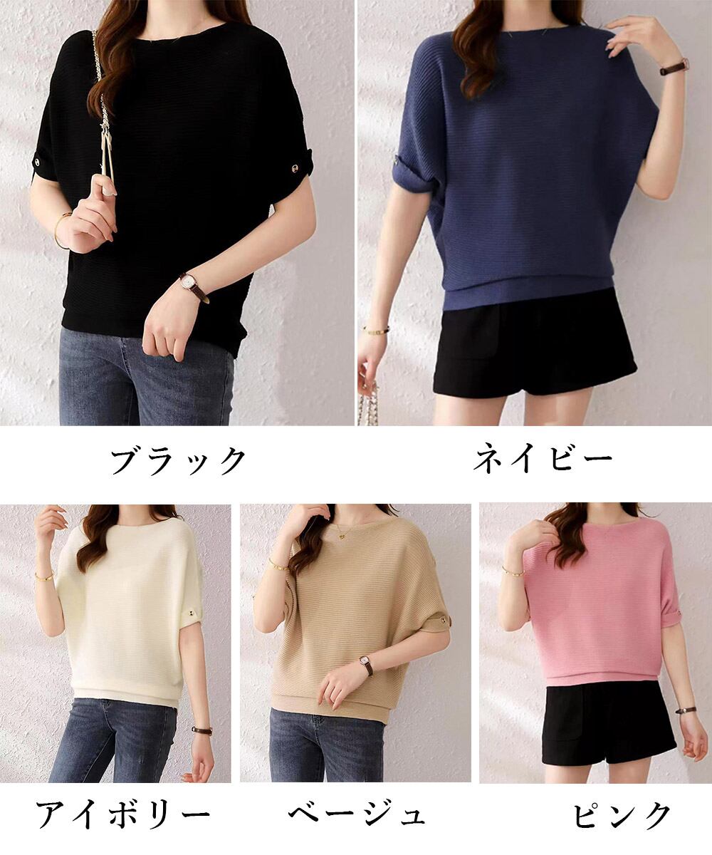 レディース ボートネック ニットトップス 着やせニットTシャツ 大人カジュアル サマーセーター 韓国風ニットプルオーバー
