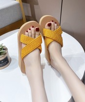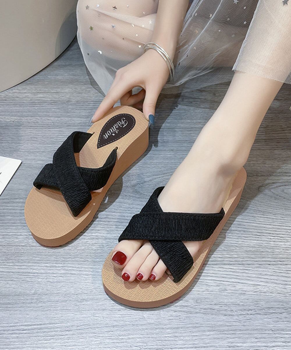 太めのクロスアッパーは安定感があり、長時間の着用も安心の厚底サンダル